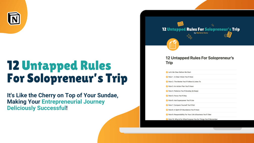 Introducing "12 Untapped Rules For Solopreneur’s Trip", the only guide you'll need to chart your journey from clueless castaway to savvy solopreneur. 👩💻